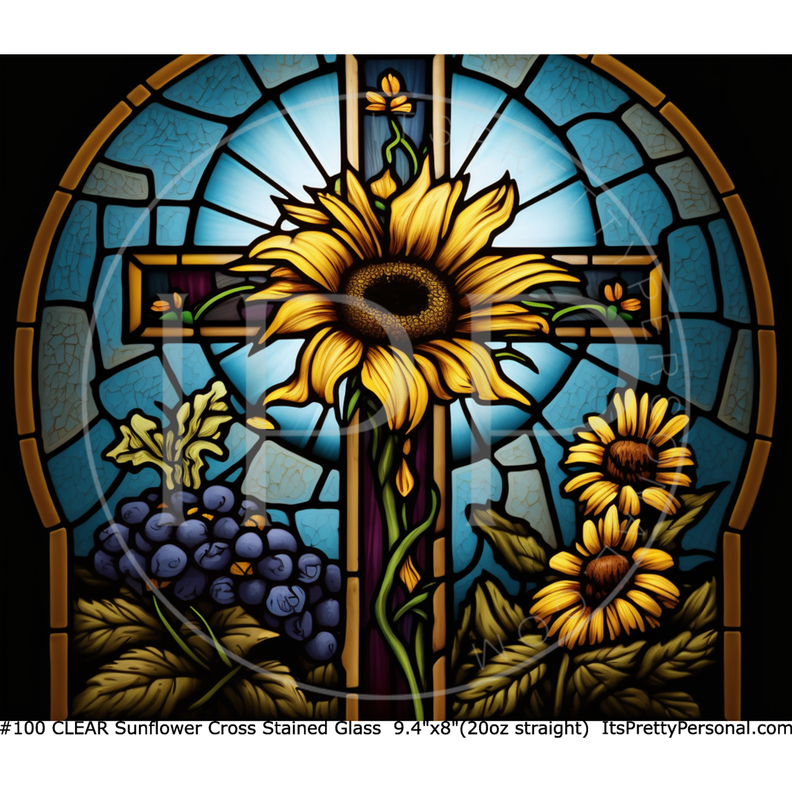 #100 CLEAR- 20oz -Sunflower Cross Stained Glass 9.4" x 8" Pattern Vinyl Wrap