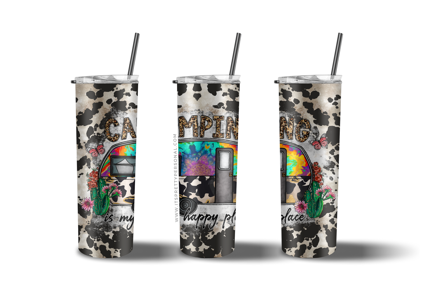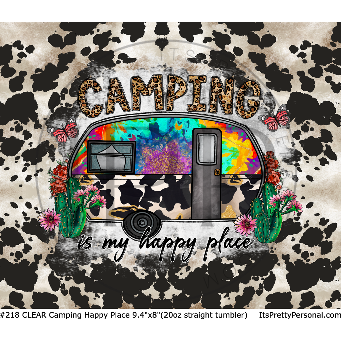 #218 CLEAR- 20oz - Camping Happy Place 9.4" x 8" Pattern Vinyl Wrap