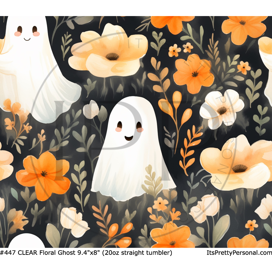 #447 CLEAR- 20oz -Floral Ghost 9.4" x 8" Pattern Vinyl Wrap