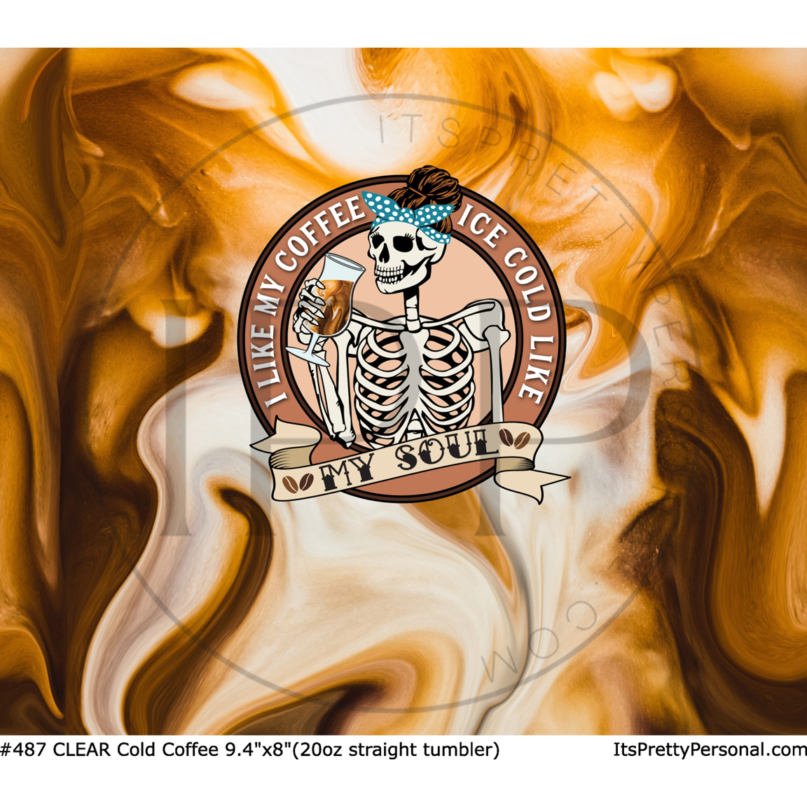 #487 CLEAR- 20oz -Coffee Cold Soul 9.4" x 8" Pattern Vinyl Wrap