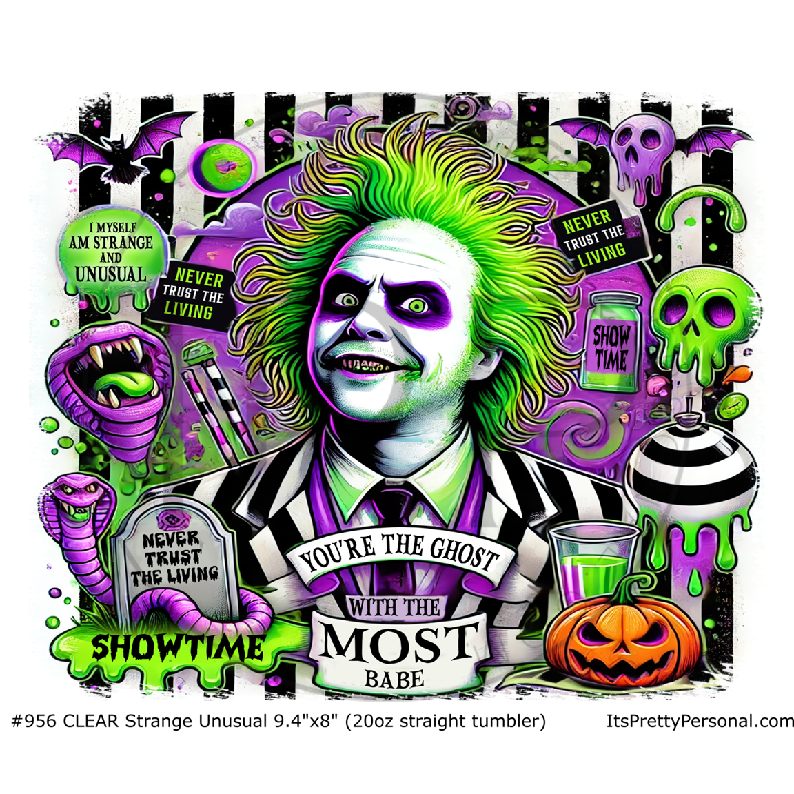#956 CLEAR- 20oz -BJ Ghost With The Most 9.4" x 8" Pattern Vinyl Wrap