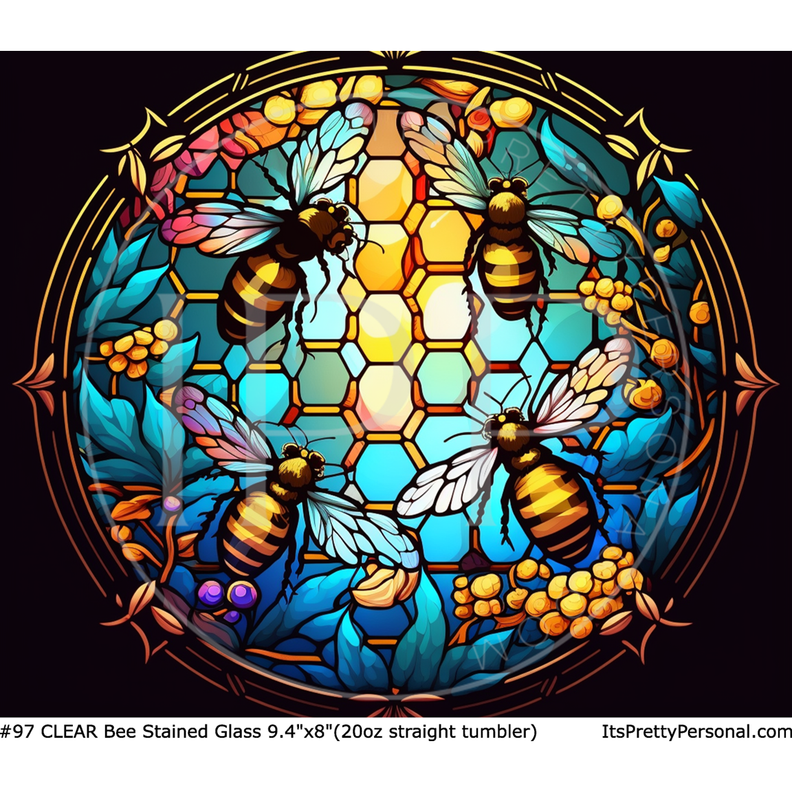 #97 CLEAR- 20oz - Bee Stained Glass 9.4" x 8" Pattern Vinyl Wrap