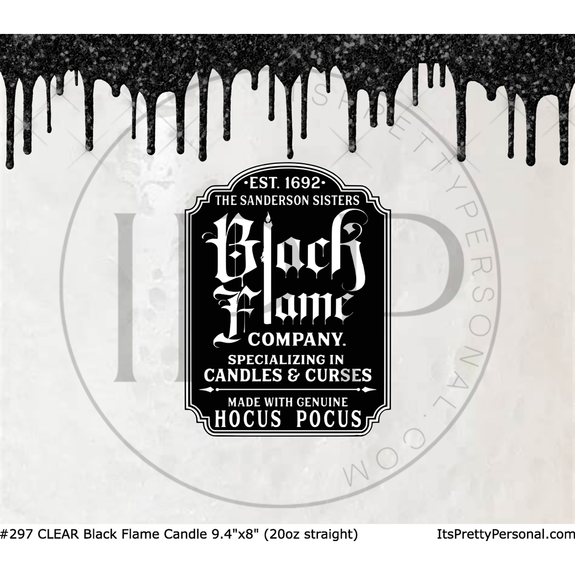 #297 CLEAR- 20oz - Black Flame Candle 9.4" x 8" Pattern Vinyl Wrap